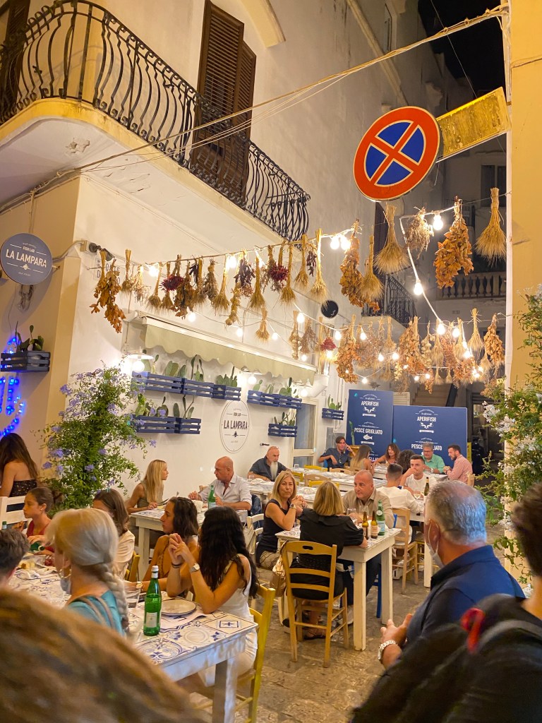 Assolutamente da provare sono i buonissimi rustici salati, la puccia, le friselle, il pesce fresco e frutti di mare. Il caffè in ghiaccio con latte di mandorla e i pasticciotti delle Pasticcerie Martinucci una vera bontà ma vi avviso…creano dipendenza!!!