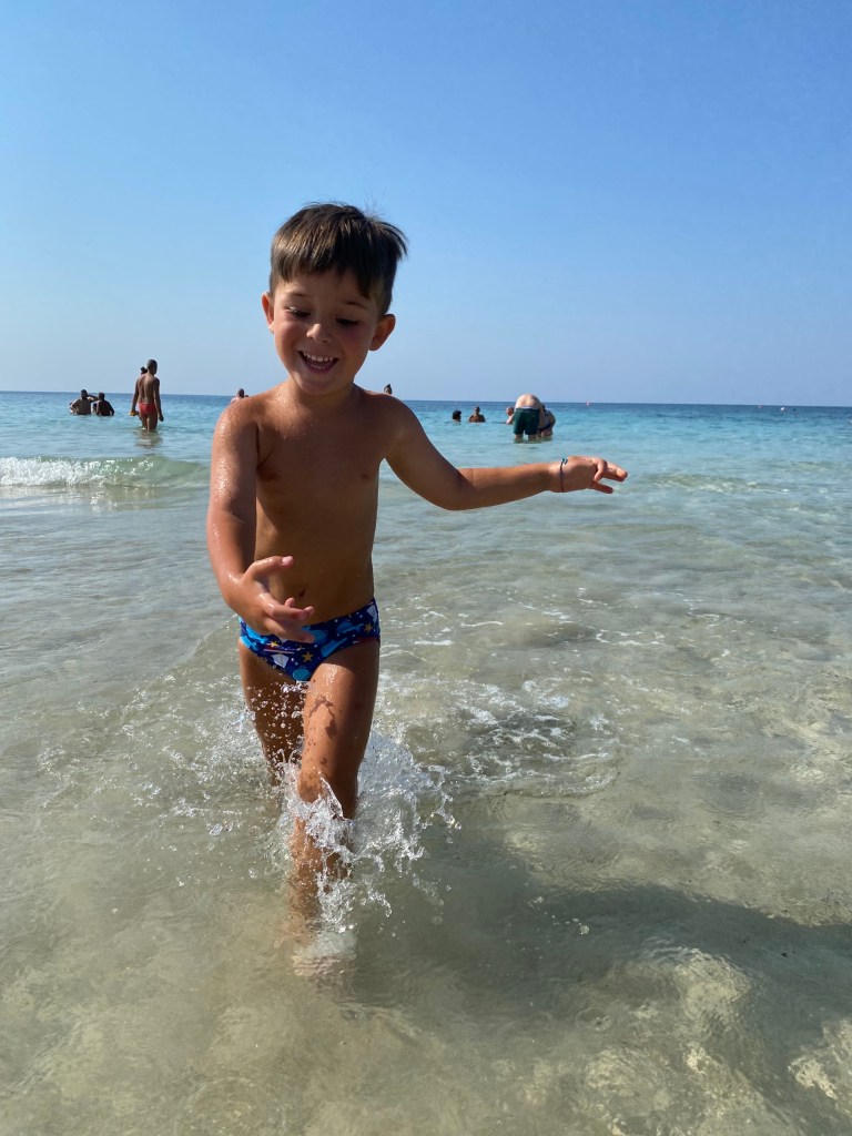 La mattina ci siamo goduti il mare con un’acqua limpidissima e turchese, Salvatore si è divertito giocando fino allo sfinimento in spiaggia con i suoi amichetti conosciuti qui. Francesco invece dopo qualche giorni dove era un po’ titubante, ha iniziato ad apprezzare anche lui l’acqua e la sabbia. Per pranzo tornavamo a casa per far mangiare i bimbi e farli riposare al fresco. Il pomeriggio invece in base ai progetti e i posti che volevamo visitare decidevamo se passare ancora qualche oretta al mare o partire alla scoperta Salento.